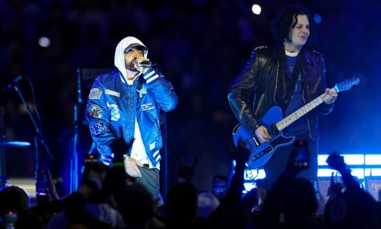 It should maybe not be a surprise that Eminem showed up for White’s performance, as the rapper and his manager and Shady Records co-founder Paul Rosenberg are the executive producers of the halftime show, along with Jesse Collins Entertainment. Eminem and Rosenberg will help with the Lions’ Thanksgiving halftime production through 2027.