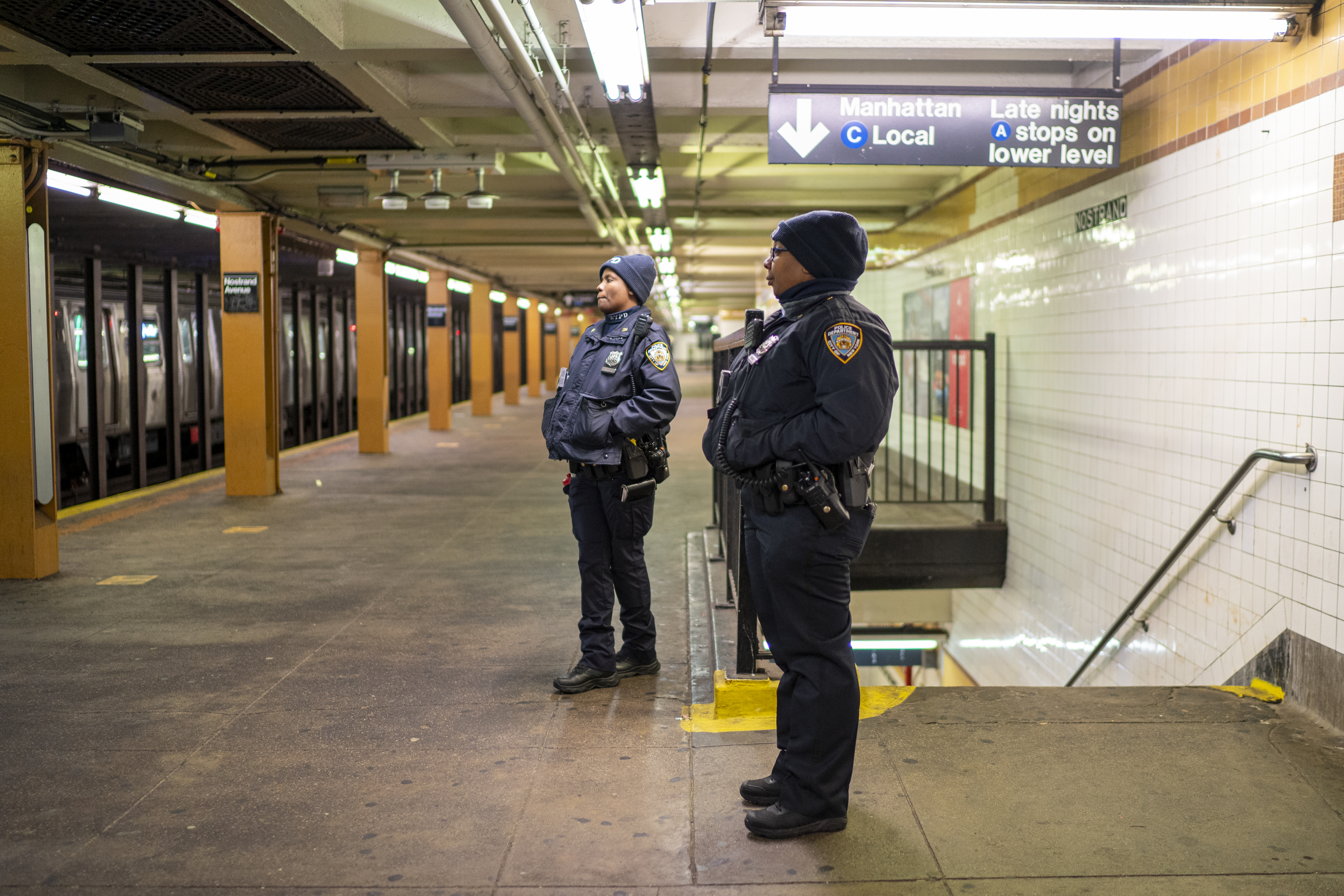 The men who allegedly made the threats got off the train at Nostrand Avenue. It was not immediately clear where they went from there. No arrests had yet been made, police said.